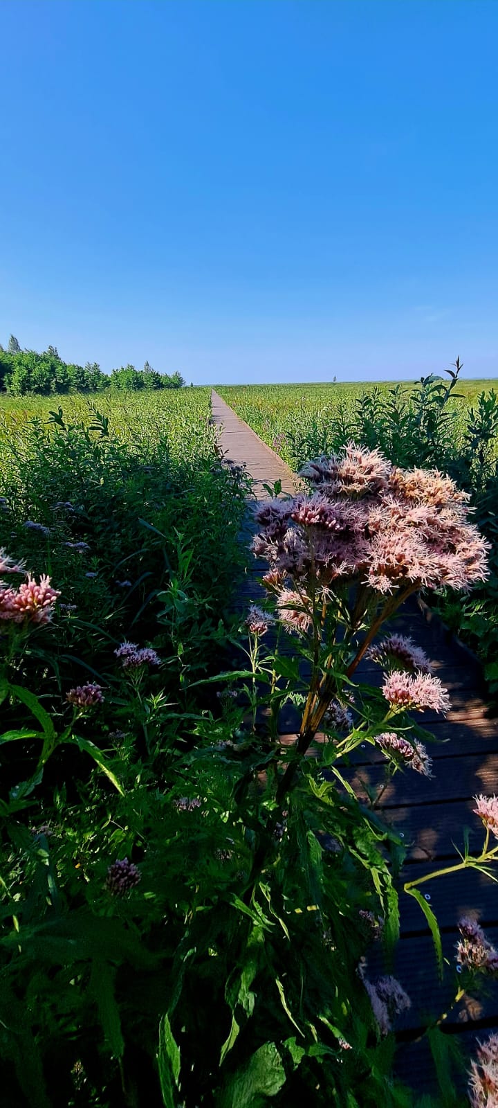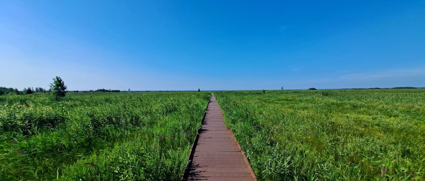 Ścieżka w formie kładki odchodzącej od Carskiej Drogi w głąb największego w dolinie Biebrzy zwartego kompleksu torfowisk niskich.